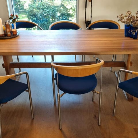 Formgivet i 1991. Fremstillet hos Hansen & Sørensen, One Collection. Stolene fremstår i rigtig god med kun enkelte, små brugsspor.