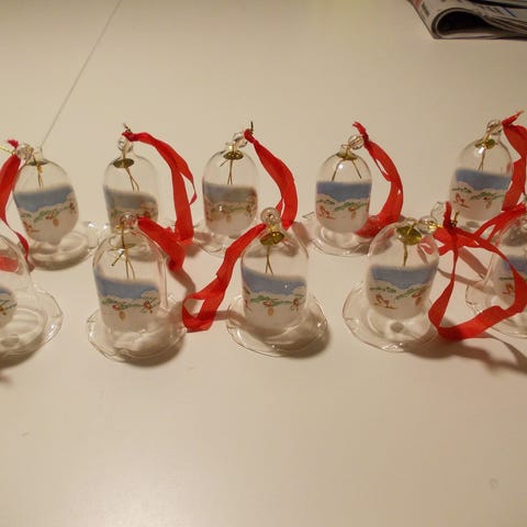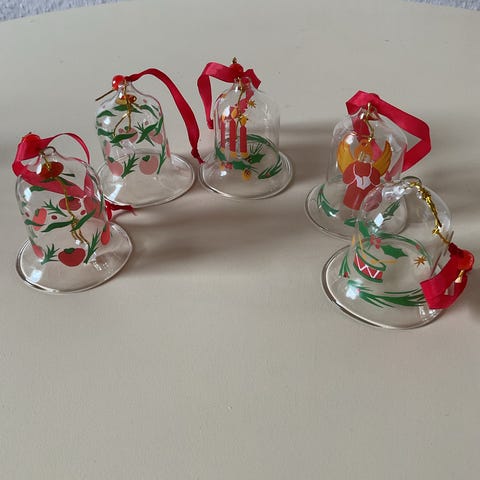Kasse med 6 fine glasklokker med fuglemotiv samt 2 ekstra med samme motiv sælges for i alt kr 175 plus porto