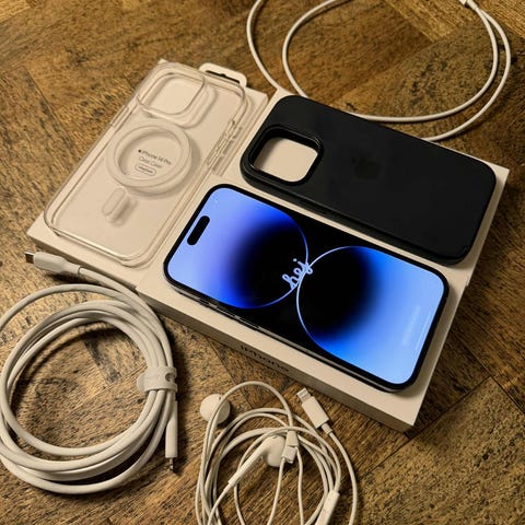 Der medfølger ladekabel (usb-c til lightning), emballage æske og kvittering fra jeg købte telefonen.