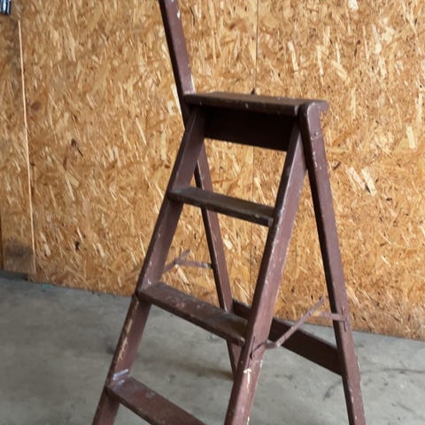 Ældre trappestige i bejdset fyrretræ,med 4 trin.