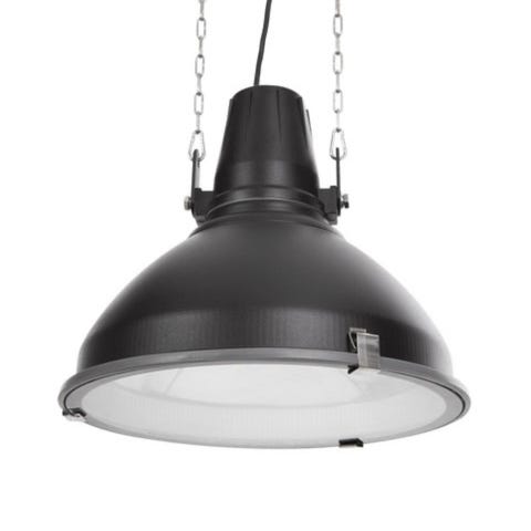 hænges op i det medfølgende beslag, hvorfra der hænger to kæder ned til lampen Aarhus industrilampe arbejdslampe lys.