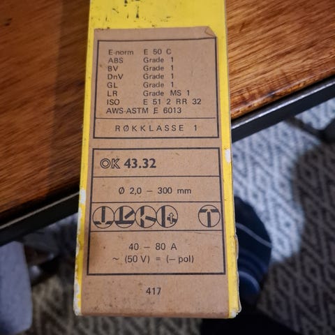 Esab elektrode. Ok 46.16 ø2.0-300mm 1.9 kg ca 200 stk × 2 det vil sige ca 400 stk. Den ene pakke er åben.