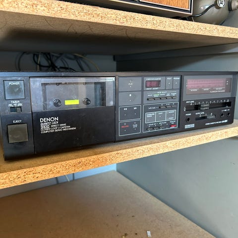 Denon DR-M11 stereo kassettebåndoptager. Denne enhed er en del af Denons serie af lydudstyr og er designet til at afspille og optage kassettebånd. Den har forskellige funktioner, herunder program musik søgesystem, Dolby NR, og en fluorescerende peak meter. Den har også justerbare input- og outputniveauer samt en hovedtelefonudgang.