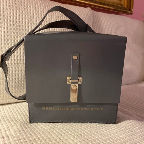 Lækker kraftig brun taske i kernelæder. Helt ny - mærke sidder stadig på. Fra Bereitschaftstasche. Lang justerbar rem - sidder godt når man har den på.