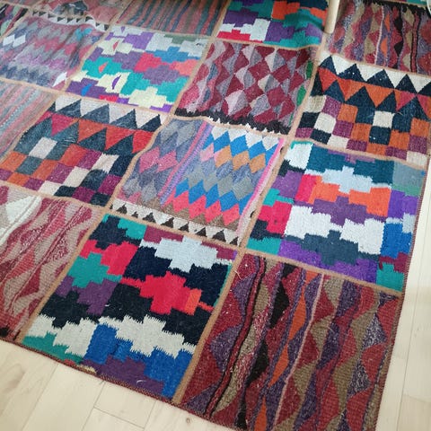 Stort flot Kelim gulvtæppe - der er virkeligt blevet passet på det. Prisen er fast