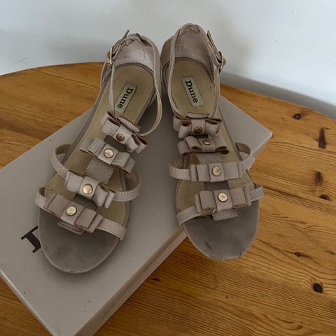 Sandaler, str. 36, Dune, Brun, beige, sort, Læder, hør, Næsten som ny, Høje sandaler fra Dune i str. 36, der er moderne og klassisk på samme tid.