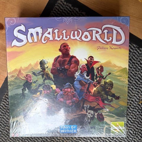 Days of Wonder Small World brætspil med fantasifulde figurer og strategisk gameplay. Spillet er designet til 2-5 spillere og anbefales til aldersgruppen 8 år og opefter. Indeholder spillebræt, figurer og spillekort i farverige illustrationer. Komplet.