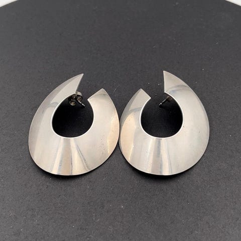 Georg Jensen Sterling Sølv Øreringe (Månesten) Måler 2.8 cm (1.10 inch) Samlet vægt 5.82 gr (0.2 oz)