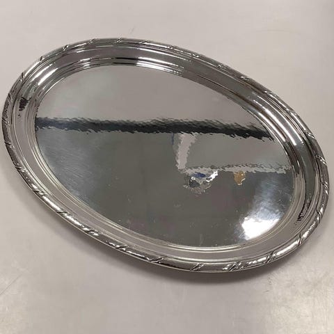 Georg Jensen Sterling Sølv Bakke med håndtag No. 332C Måler 45cm x 27cm / 17.72 inch x 10.63 inch Vejer 1889 gram / 50.6 inch