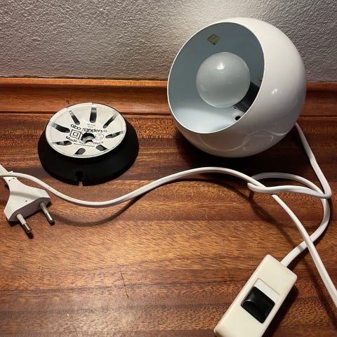 Dansk produceret sengelampe fra Abo. I fin stand. Der er monteret sort aftageligt gitter, stik og ledning med afbryder.