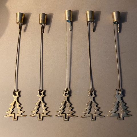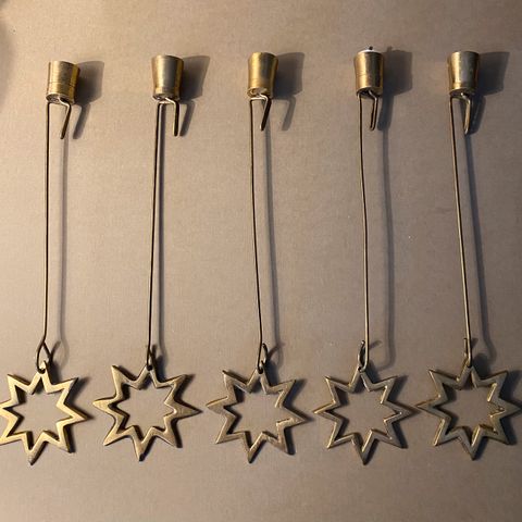 6 fine gamle lyseholdere i messing. Alle i meget flot stand, der er dog stearin på kraven, som skal fjernes (eller ikke) inden brug.