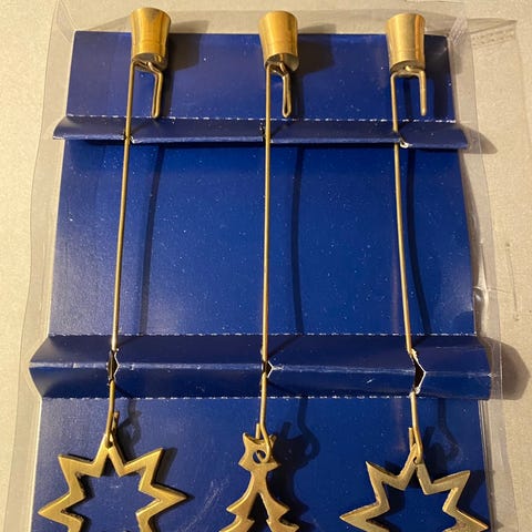 juleklokker i messing, gamle glaskugler og julepynt fra Daells Varehus.