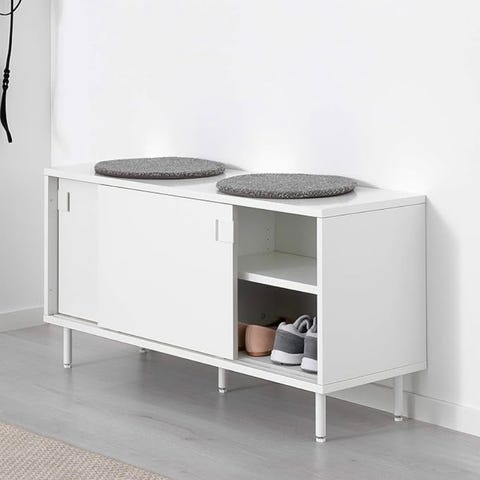 Udgået Ikea reol. To skydelåger og hylde i den ene side.