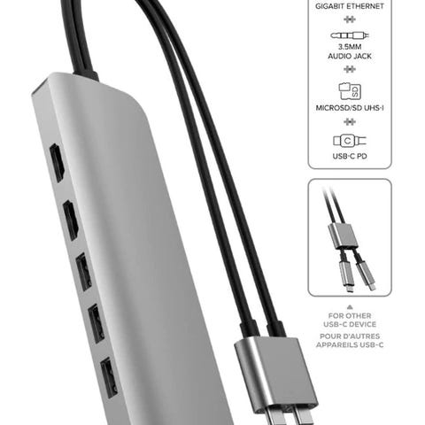 Razer Thunderbolt Dock Adapter med flere porte inklusiv USB-C og Ethernet. Adapteren er sort og designet til at forbinde og udvide tilslutningsmuligheder for computere via Thunderbolt teknologi.