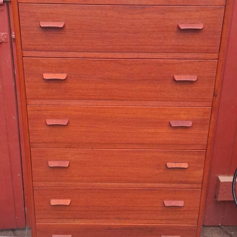 Tallboy chest of drawers with 7 drawers + key kommode med 7 skuffer + nøgle
