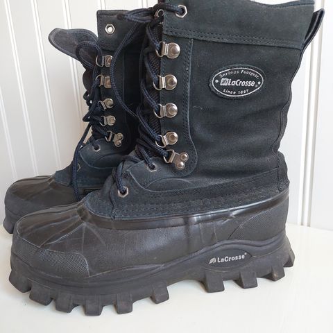 Lacoste vinterstøvler i herrestørrelse 44. Støvlerne er lavet af brun læder med lysebrune snørebånd og detaljer ved hælen. Indvendigt er støvlerne foret for ekstra varme. Sålene er lavet af gummi med mønster for bedre greb. Velegnet til koldt vejr og vinterbrug.