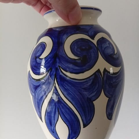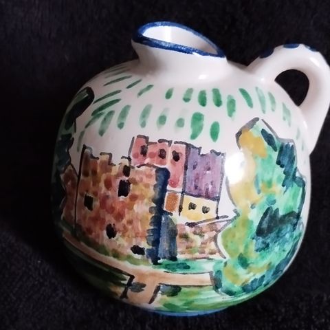 Gammel vase fra Søholm Keramik Bornholm med motiv af Hammershus. Højde 10,5 cm.