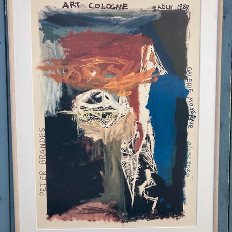 Peter Brandes. Professionelt indrammet plakat fra udstilling på galleri Der Spiegel i Köln. Med passepartout og meget mørkebrun ramme.