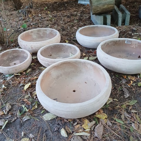 Terracotta krukker nye op til 46 cm i diameter. Priser fra 40- 285 kr pr stk