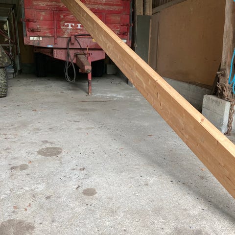 2 limtræsbjælker bredde 63mm højde 130 mm længde 2,18 m. Den ene er som ny. Den anden har synlige brugsspor, lidt maling og sømhuller