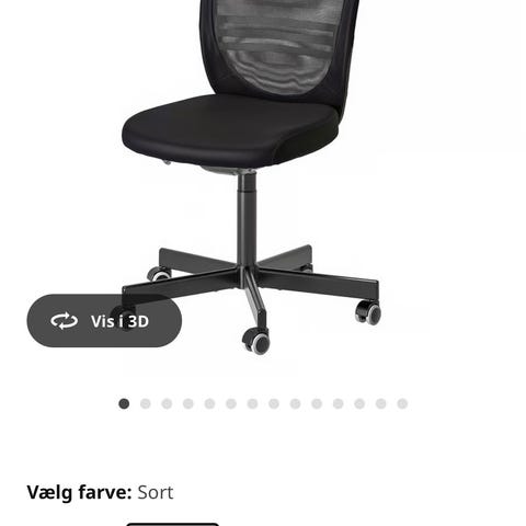 Sort IKEA stol, god stand. Den kan køres op og ned, laveste indstilling fra gulv til sæde er ca. 50cm, højeste er ca. 56cm.