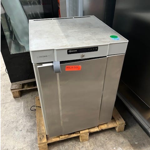 Gram Kjøledisk i rustfritt stål med 3 dører. Designet for kommersiell bruk med fokus på holdbarhet og funksjonalitet. Egnet for oppbevaring av matvarer i kjølige omgivelser.