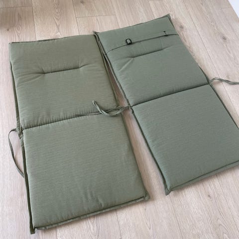 6 stk. siddehynder med isolerende materiale og betrukket med plast så de er lette at aftørre. 5 har hulforstærkning i metal så de også kan hænge. Meget lette. Nye. Målere 40 x 40 og er 1 cm i tykkelsen.