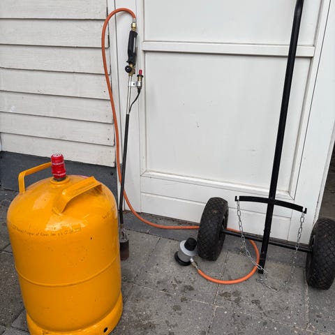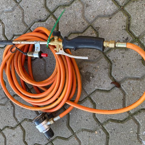 Garden gasbrænder med tilhørende slange og regulator til tilslutning til gasflaske. Anvendes til afbrænding i haven eller til andre formål, hvor en gasbrænder er nødvendig. Sættet inkluderer gasbrænderhåndtag, slange 5m, regulator og gasflaske (ca halvt fuld). Pietzo tænding virker ikke, så skal tændes med ekstern kilde (lighter el lign). Kraftig model som er hurtig at bruge og meget effektiv.