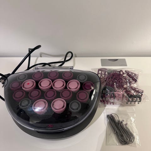 Remington varmelegeme til hårkrøller med flere krølleruller i forskellige størrelser. Enheden leveres med varmebeskyttere og klemmer. Designet til at opvarme krølleruller til hårstyling.