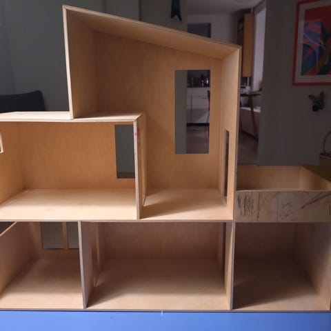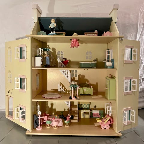 Wooden Pintoy dollhouse / Pintoy trædukkehus i træ med meget tilbehør
