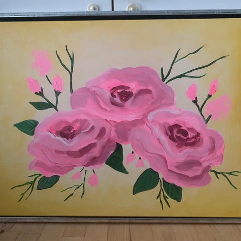 3 Malerier med blomster og figur Malet af MalerierByMF