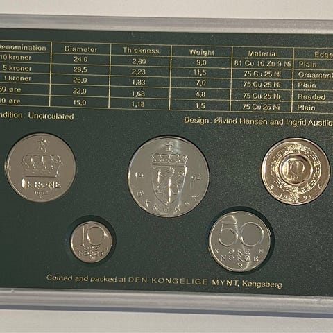 10 kroner, 5 kroner, 25 øre alt som på fotos