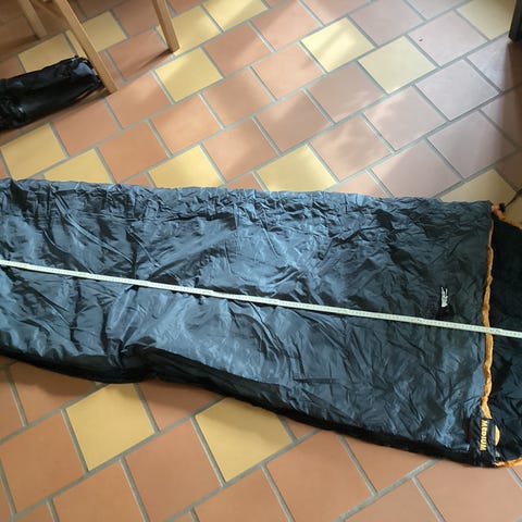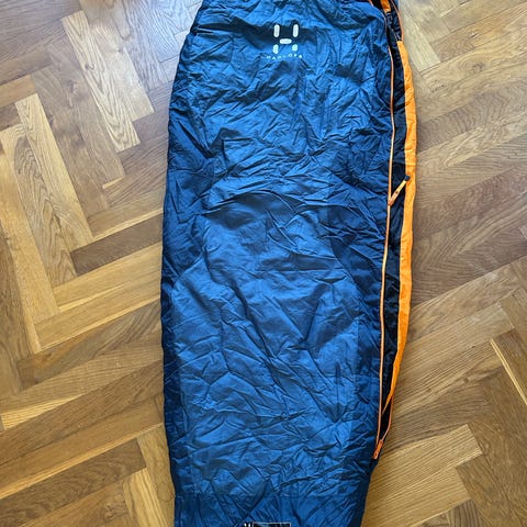Haglöfs Ara 14 sovepose med en længde på 150 cm. Farverne er blå og gul. Soveposen er designet til udendørs brug og kan pakkes kompakt i den medfølgende sort pakkepose med justerbare stropper. Materialet og isoleringsegenskaberne er ikke specificeret, men soveposen er velegnet til brug i koldt vejr. Den har ingen huller og er mest brugt indenfor i rygefrit og dyrefrit hjem. Se anden annonce