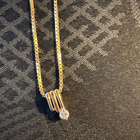 Jeg har denne næsten nye guld halskæde, ny pris 1250kr for vedhæng & 450kr for kæden, min pris 1300kr.