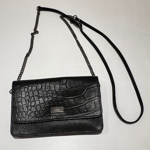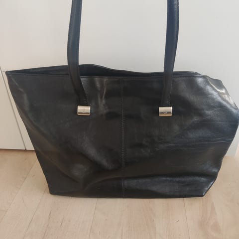 Sort crossbody lædertaske med flere rum. Lynlåslukning. Måler ca 34x35