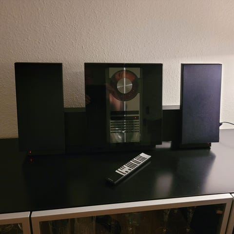 Legendarisk lyd & design klassiker fra Bang & Olufsen. Lydsystemet BeoCenter 2 inkl. BeoLab 4 højttalere (2 stk.). CD-afspiller, radio, indgang til tvlyd. Inkl. basisenhed og beslag til vægophæng samt div. kabler.