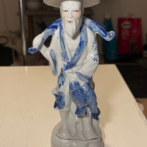 Vintage figur i porcelæn (med patina) - stemplet i bund. H 12,5 cm.