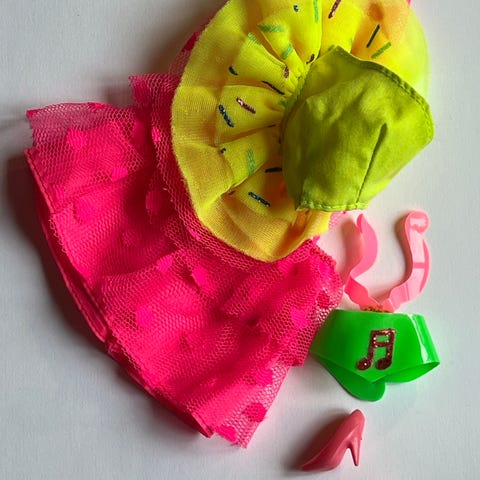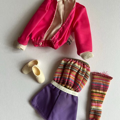 Originalt, Barbie Mattel sæt fra 1963-64 fashion packs, Jumpin'Jeans, bukserne er i god stand og lynlåsen virker, blusen har en lille bristning