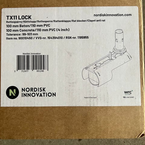 TX11 LOCK rottespærren fra Nordisk Innovation er en effektiv løsning til sikring mod rotter i rense- og inspektionsbrønde. Den passer til Ø150 mm betonrør og Ø160 mm PVC-rør. Den indvendige rørmåls tolerance er på Ø147–151 mm..