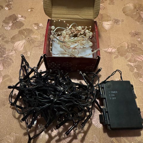 Lyskæde med spøgelser og lyskæde med græskar. Begge til batterier. To små spøgelser og tre græskarhoveder med hat. Samlet salg.