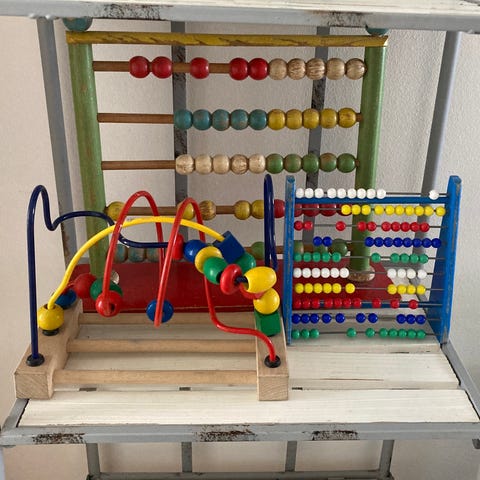 Kugleramme fra kids Wood lavet af træ med farverige perler. Legetøjet er designet til at hjælpe børn med at lære tal og grundlæggende matematik ved at flytte perlerne på stængerne.