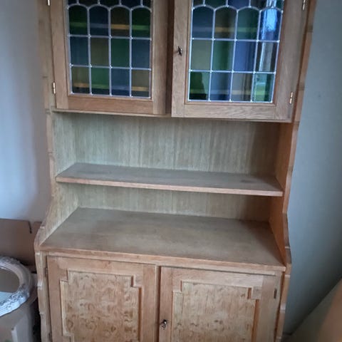 God stand med få brugsspor, med lys til vitrineskabet.