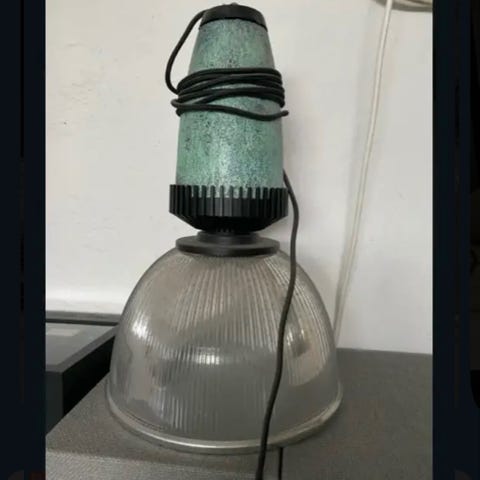 Fire meget lækre, gamle emaljerede arbejdslamper. Sorte (hvide indvendig). De er helt uden afslag på emaljen.
