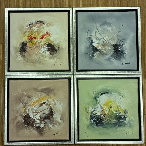 2 super flotte malerier af maleren Jannic. De måler 61 cm +61 cm. Sælges kun samlet for 1000 kr. De skal afhentes i Vallensbæk strand. Har flere malerier til salg så tag gerne et kig.