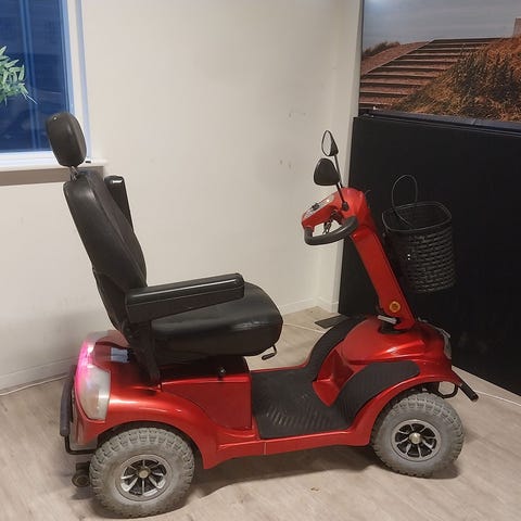 Fin brugt 4-hjulet scooter, som er god til alt terræn, let betjenelig og med kraftig motor så køreglæden er helt i top. Scooteren er udstyret med komfortsæde m. justerbare armlæn og nakkestøtte.