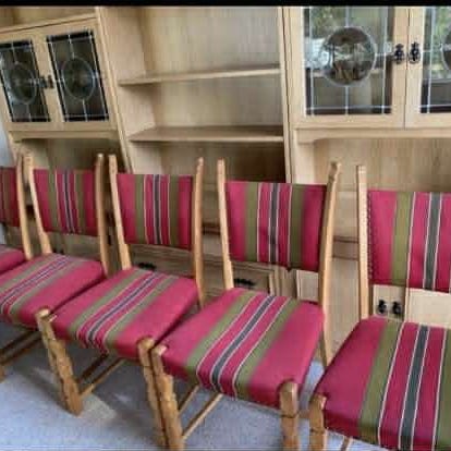 4 stole i ubehandlet eg med sort læder på sæde og ryglæn.