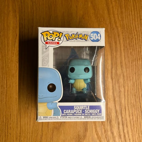 Funko Pop! Games Squirtle Figurine 504. Samlerfigur af Squirtle fra Pokémon-serien, fremstillet i vinylmateriale. Figuren er ca. 9 cm høj og designet med blå farve og karakteristiske træk fra Squirtle. Egnet til samlere og fans af Pokémon.