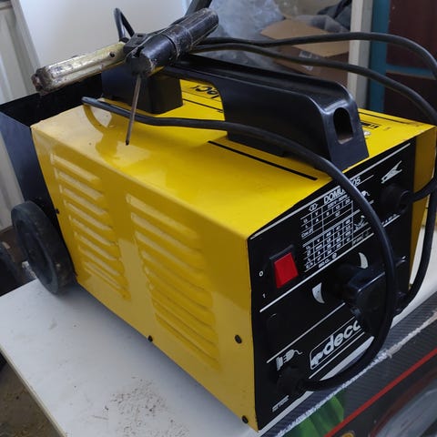 Samson svejseværk med svejseskærm og mange elektroder. De 3 øverste pakker er uåbnede.