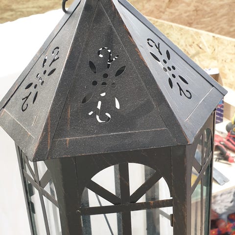 Lanterne med blad design til bloklys eller store fyrfadslys.