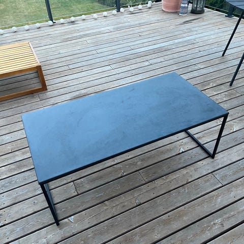 Bolia Como sofabord i “sand taverin” bordplade af sten med creme lakerede stålben. Nypris 16.000kr.